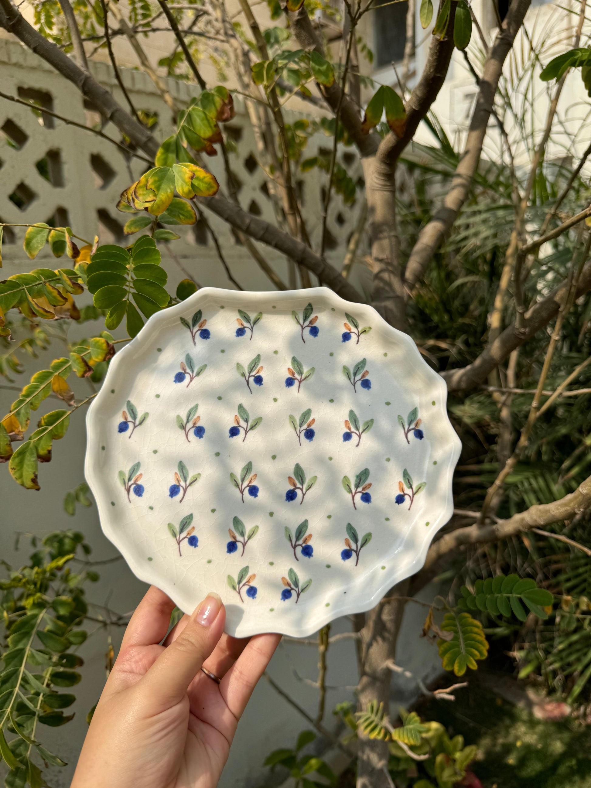 This unique plate, adorned with hand-painted blue flowers, introduces a touch of elegance to your table. Microwave and dishwasher safe, its distinctive shell shape adds a charming twist to your culinary presentation