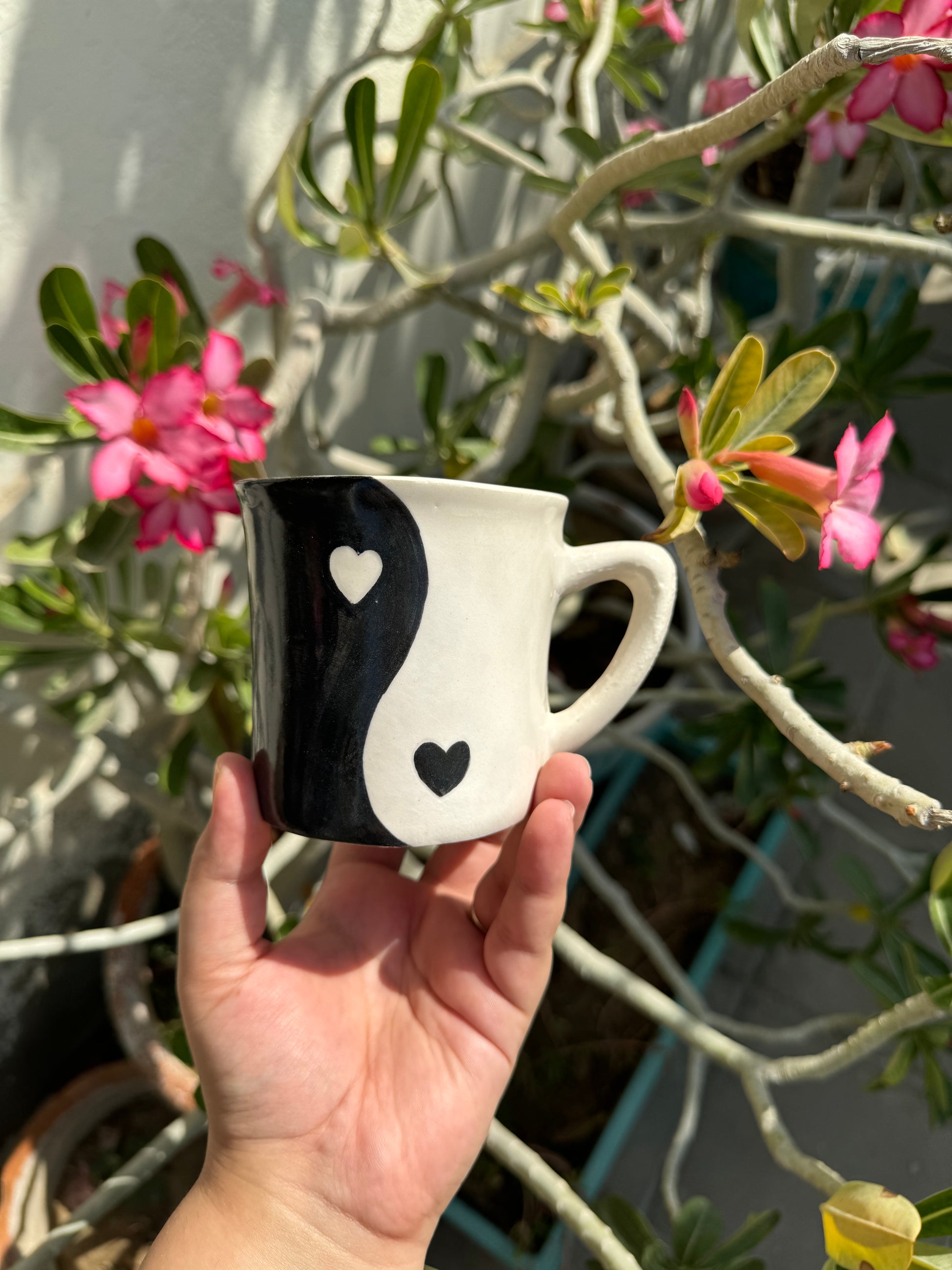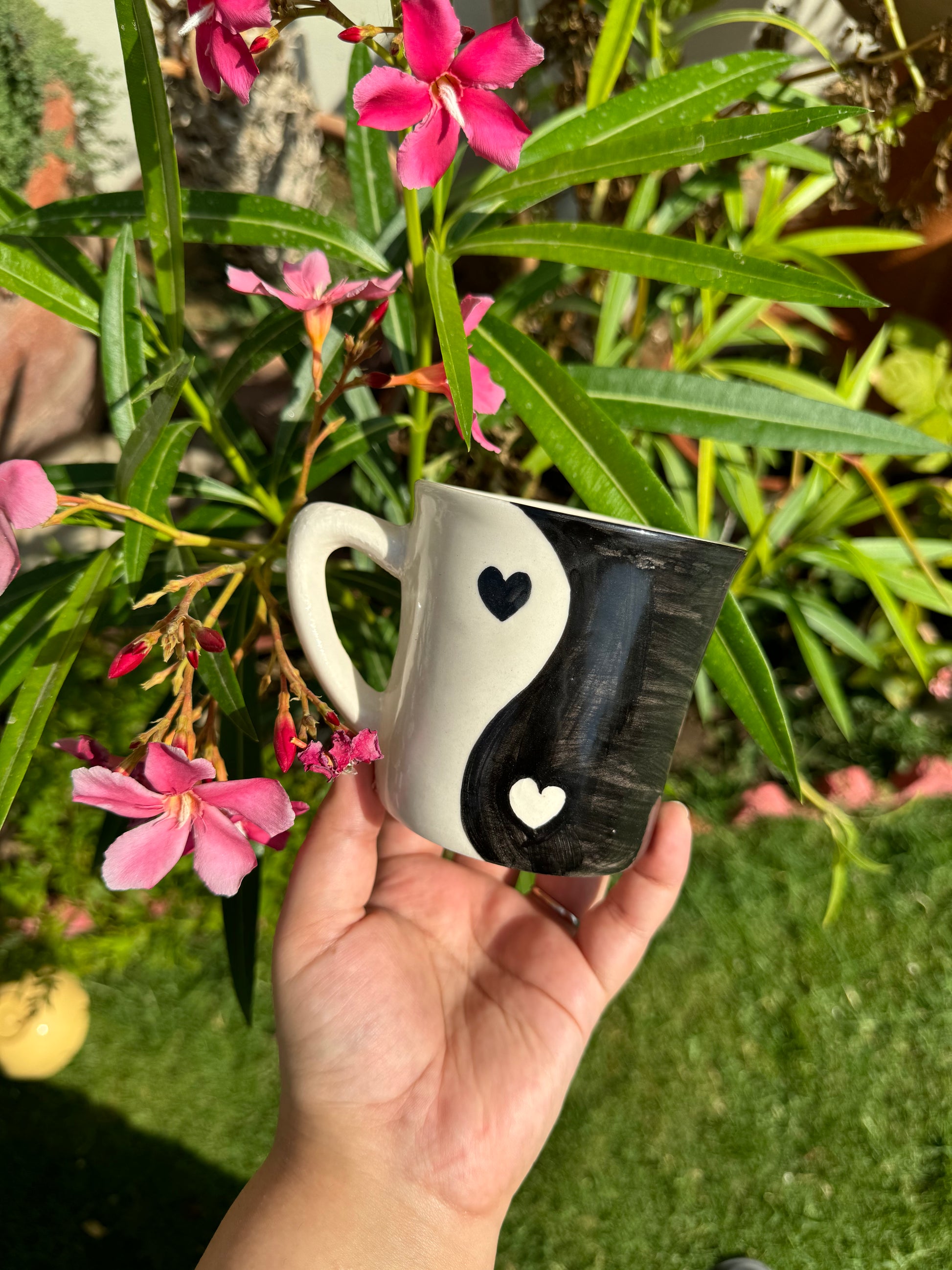 Introducing our exquisite hand-painted ceramic mugs, adorned with a captivating yin yang heart design. Each sip becomes a gesture of love and harmony, perfect for gifting to cherished ones who hold a special place in your heart. Elevate your moments of connection with our unique creations.